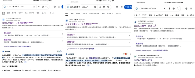 毎朝確認の為に「ユズル工事サービスLLP」「ユズル工事サービス」をchromeで検索しています。AI概要で「公式...